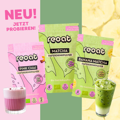 Wir wollten Pflanzendrinks neu denken und jetzt kannst du deinen reoat Haferdrink ganz einfach zu Hause selbst machen: Tüte auf, Pulver raus und Wasser drauf.